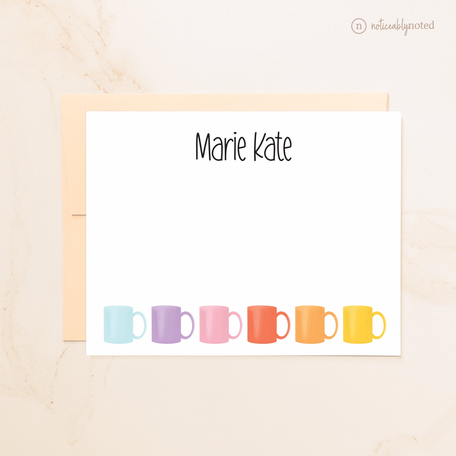 Your name is printed beneath these hand-drawn mug, making each note feel extra thoughtful—perfect for everyday correspondence, teacher gifts, or anyone who runs on caffeine and kindness.